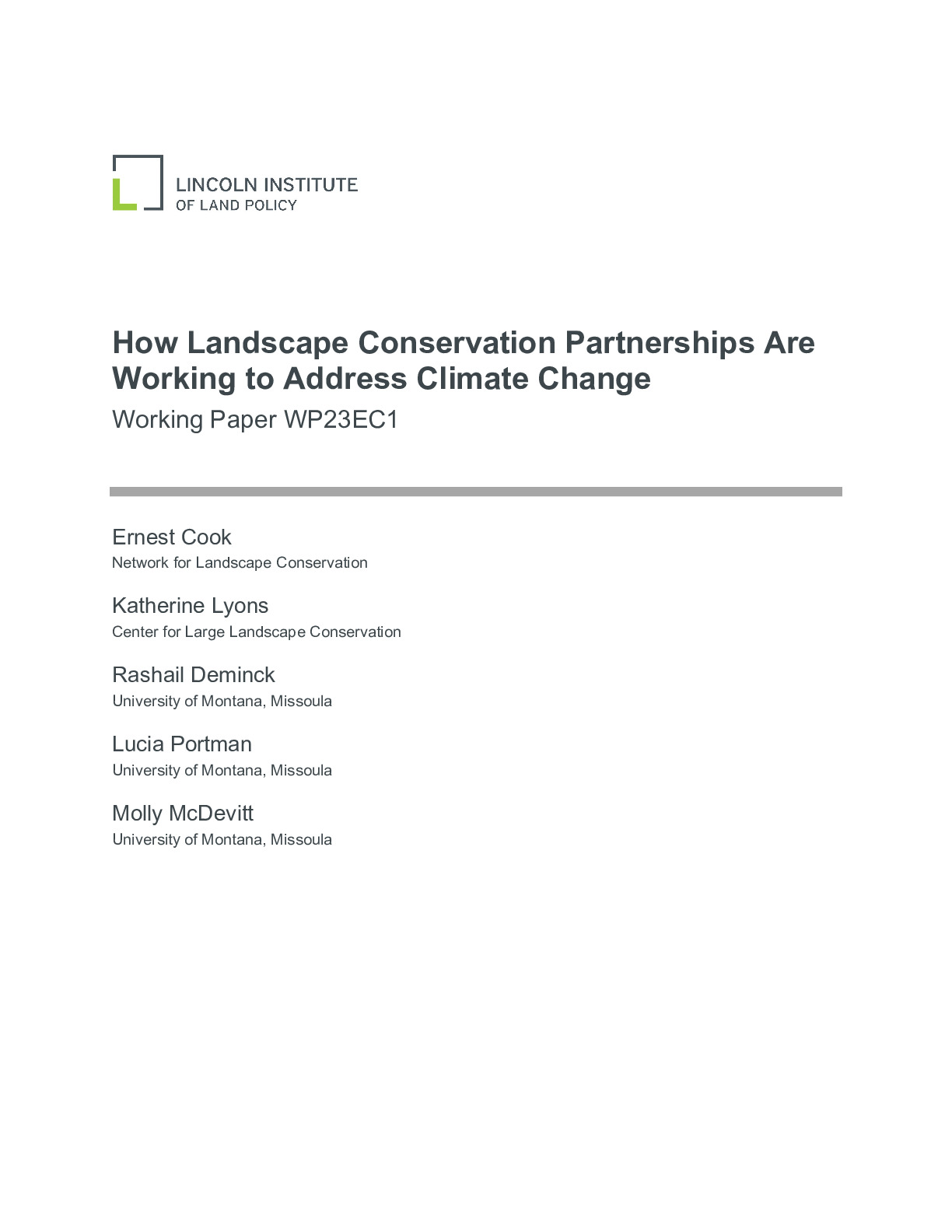 The Lincoln Institute of Land Policy, in partnership with the Network for Landscape Conservation and the University of Montana, has released a working paper exploring the role of large landscape conservation in providing nature-based climate solutions.
