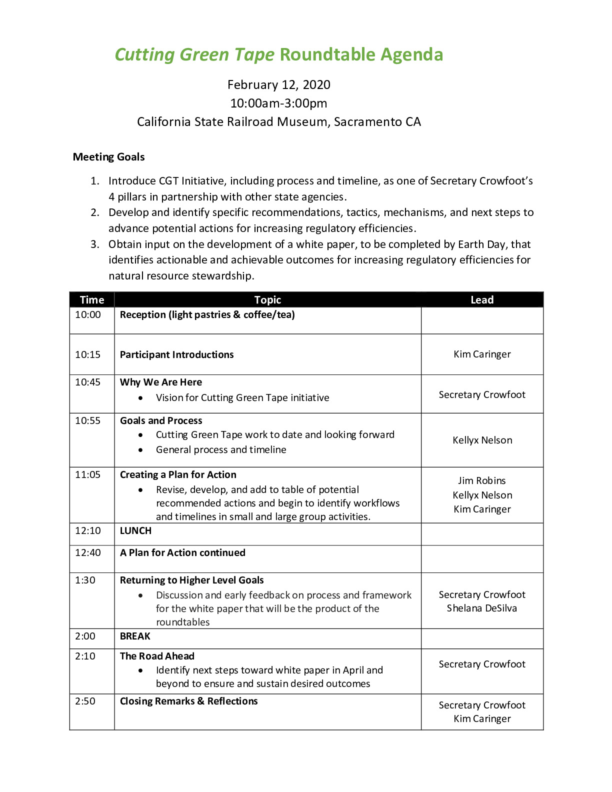 - Obtain input on the development of a white paper, to be completed by Earth Day, that identifies actionable and achievable outcomes for increasing regulatory efficiencies for natural resource stewardship.