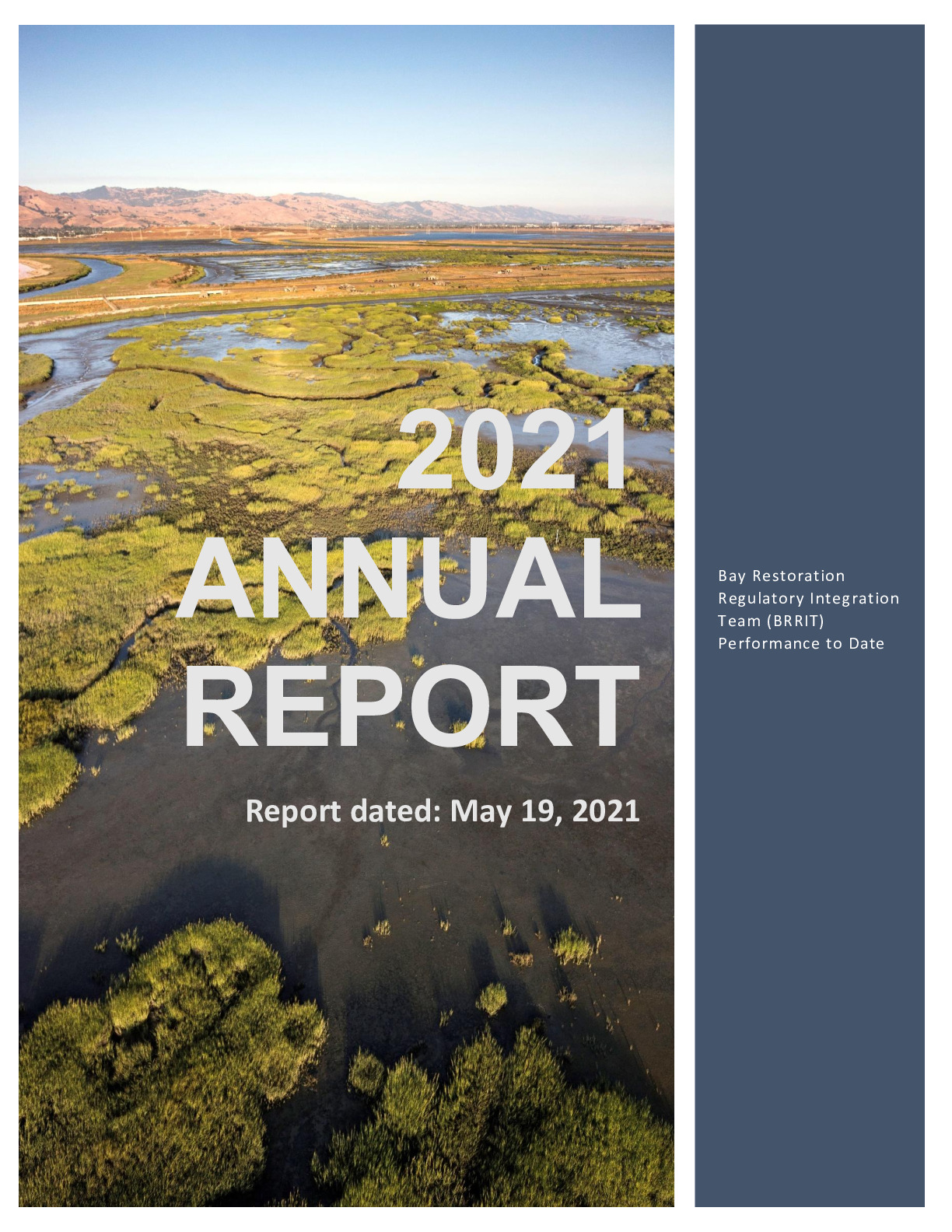 This annual report reviews the activities and performance of the Bay Restoration Regulatory Integration Team (BRRIT) through April 2021, and incorporates relevant information from the initial performance memo provided to the San Francisco Bay Restoration Authority (SFBRA) Governing Board in May 2020 (May 2020 Memo).